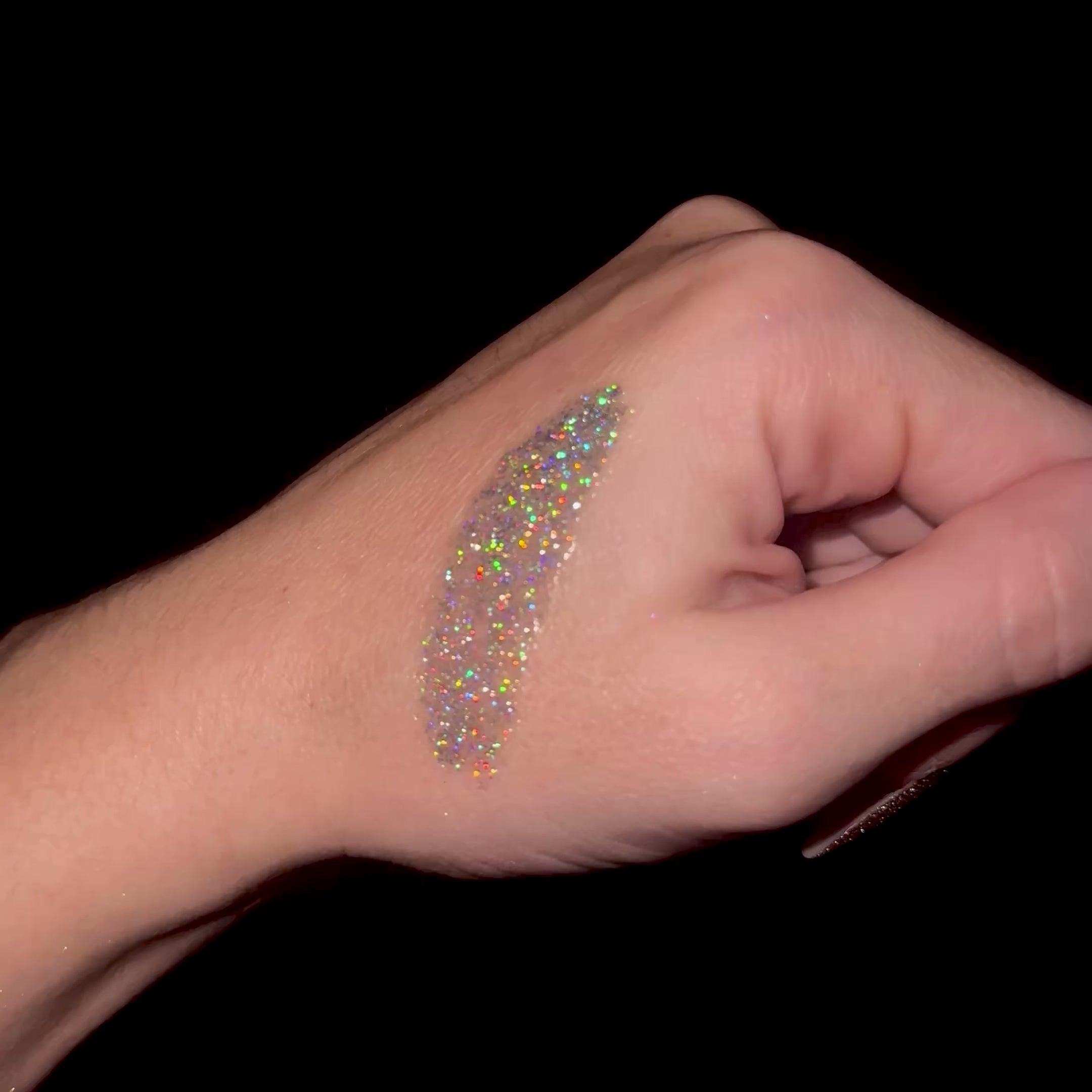 💎 Texture : fluide, nacrée et ultra-brillante • 🌈 Effet : holographique & multichrome, reflets changeants selon la lumière • 💄 Fini : effet miroir scintillant.