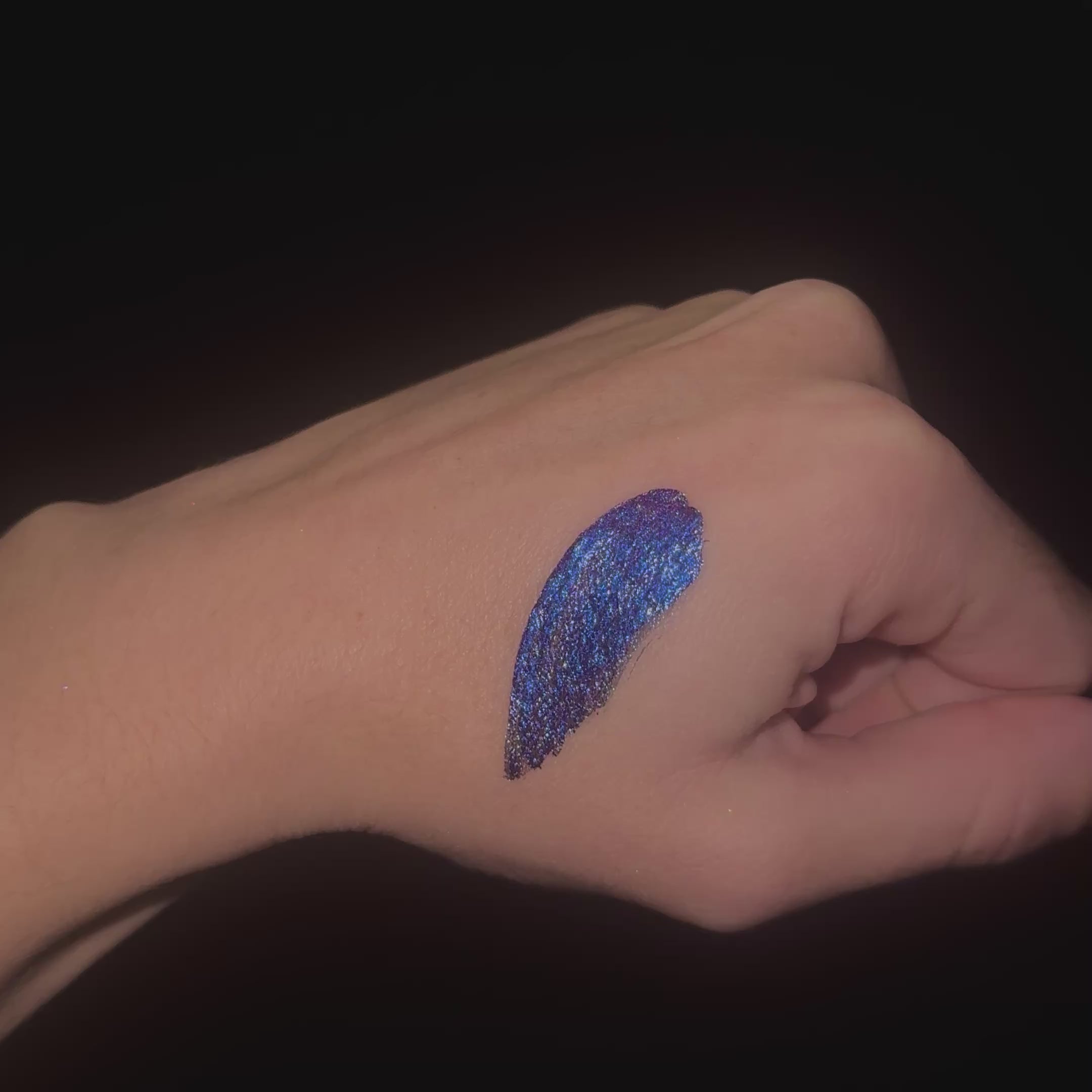 La lumière glisse sur la paupière et se fracture en multiples teintes. Les pigments multichromes révèlent une profondeur 4D qui évolue à chaque mouvement.