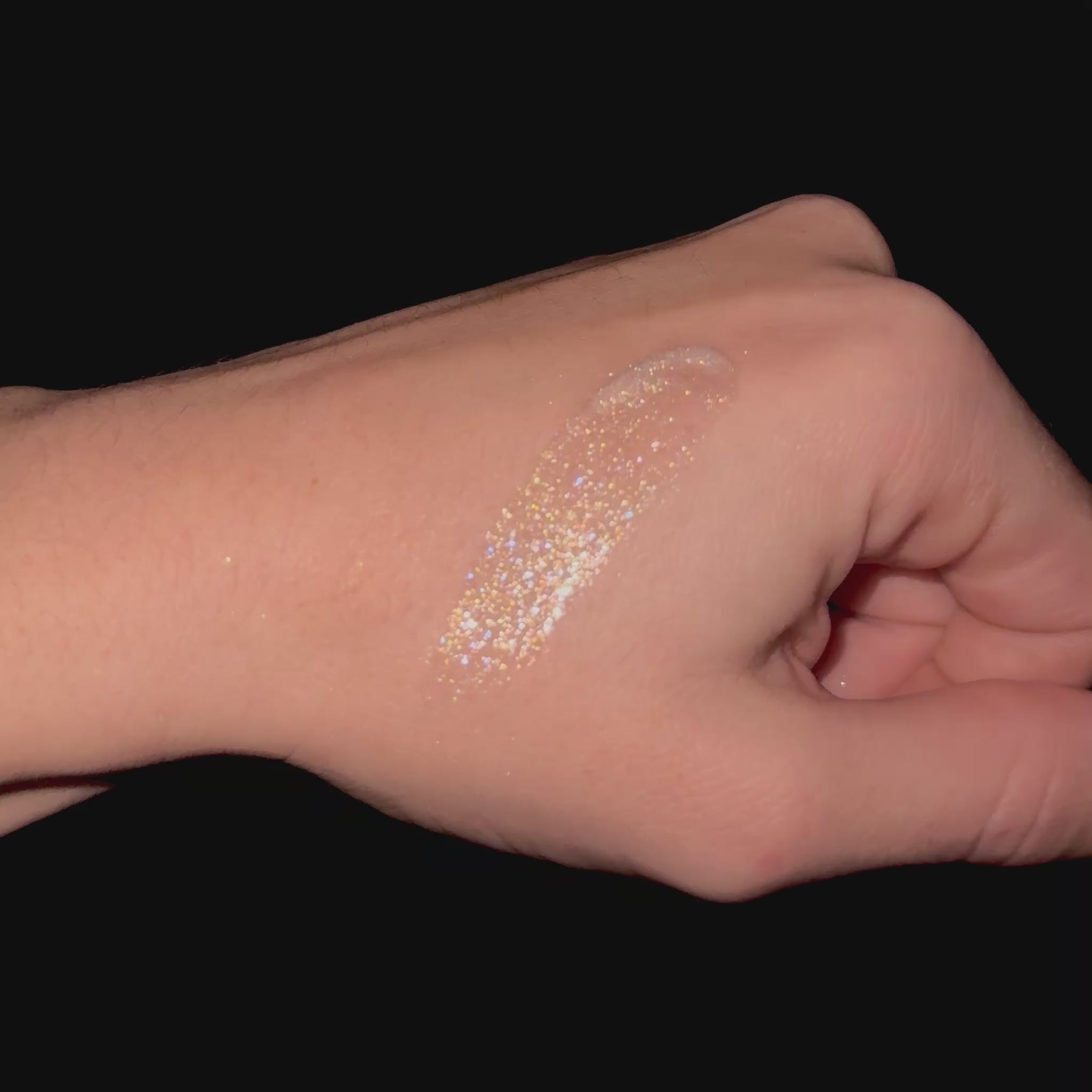 GoldenKiss est un gloss pailleté : brillance miroir + micro-paillettes qui captent la lumière. Le rendu varie selon la variante choisie.
