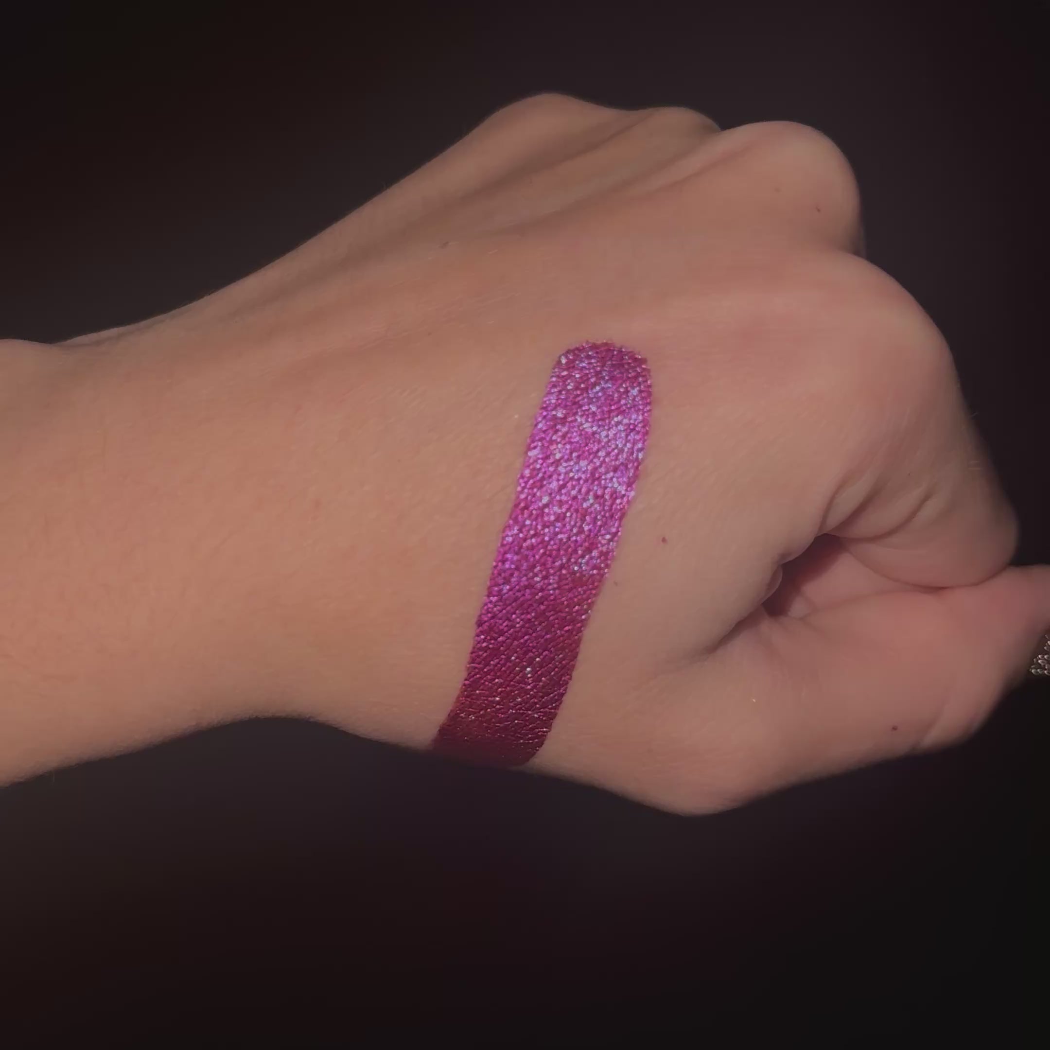 J’en mets un peu sur une base crème, et le rendu devient presque métallique. Les reflets sont nets et visibles même en intérieur. Une pépite.